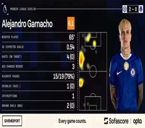 英超第16轮,切尔西在主场2-0击败埃弗顿,重回胜利轨道。本轮之后,切尔西暂居英超第4位,古斯托、恩佐、帕尔默、查洛巴等球员都成为球队的亮点。但并非所有人都表现合格,加纳乔赛后仅获得3分的低评分,表现让人失望。
