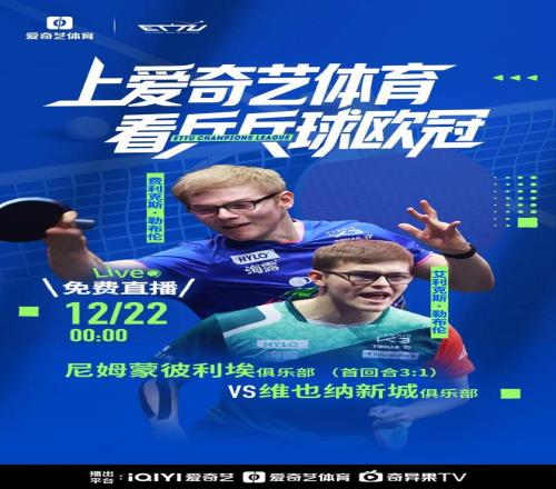 2025/26赛季欧洲乒乓球联盟(ETTU)男子欧冠联赛展开16强赛次回合的争夺。首回合比赛已屡现逆转、爆冷与个人高光时刻,各支俱乐部将向八强席位发起最后的冲击。25/26赛季乒乓球欧冠,爱奇艺体育免费直播焦点对决。