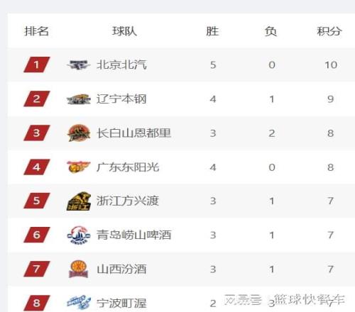 11冠王广东队,他们上一轮比赛还在积分榜第2,不过,由于少赛一轮缘故,广东队在积分上略显吃亏,暂时只能屈居第4名。目前,广东队已经拿到4连胜,下一轮比赛他们有望冲击5连胜,再次重返积分榜第2名。而排在积分榜第5名的是卫冕冠军广厦队,他们的战绩是3胜1负。广厦队和广东队一样,他们都是因为少赛一轮的缘故,在排名上稍微吃亏。青岛队则以3胜1负的战绩,排在积分榜第6位。