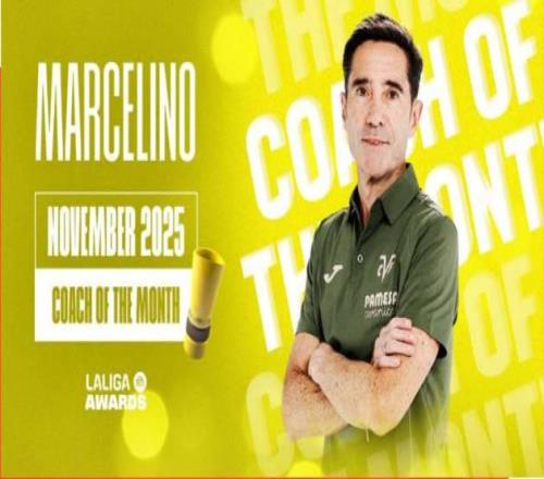 北京时间12月1日,西甲官方发布公告,宣布比利亚雷亚尔主帅马塞利诺当选11月最佳主帅。西甲官方公告:马塞利诺被评选为西甲11月最佳教练,比利亚雷亚尔在这个月表现出色,赢得了所有